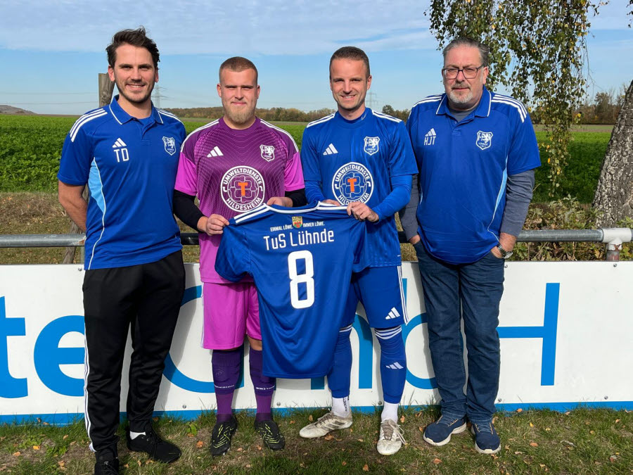 Nicht nur an der Bande, sondern auch auf dem Platz: T Umweltdienste GmbH unterstützt die 1. Herren des TuS Lühnde mit neuen Trikots